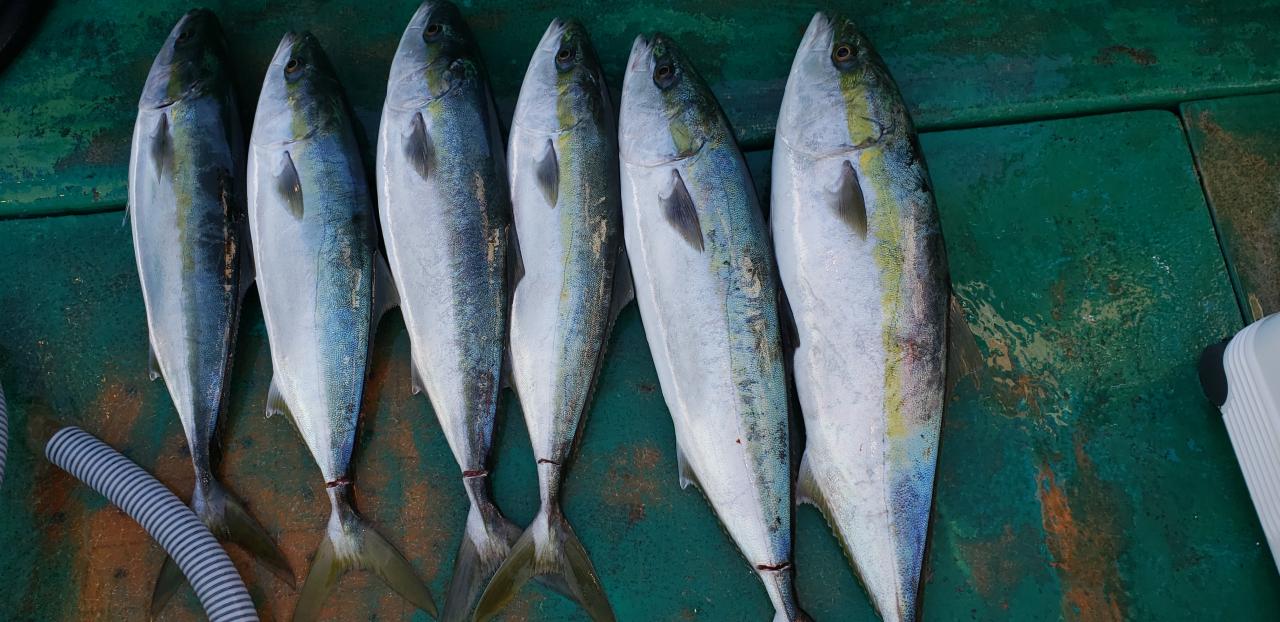 今日は少し波もありヒラメの当たりもありバラシもありましたがブリ、メジロが釣れました。